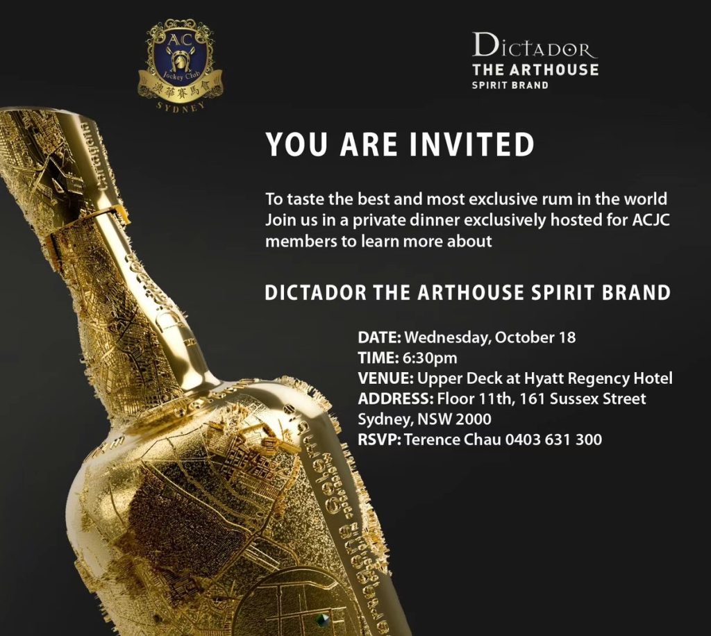 感谢Dictador Arthouse spirit公司的邀请和安排,为澳洲悉尼華人赛馬會举办了这个Rum酒品酒晚宴,以来自南美哥伦比亚超过四十年的高级Rum酒配澳洲美食,有别于以往只是在鸡尾酒中饮到的Rum酒,配以澳洲美食,另有一番风味.