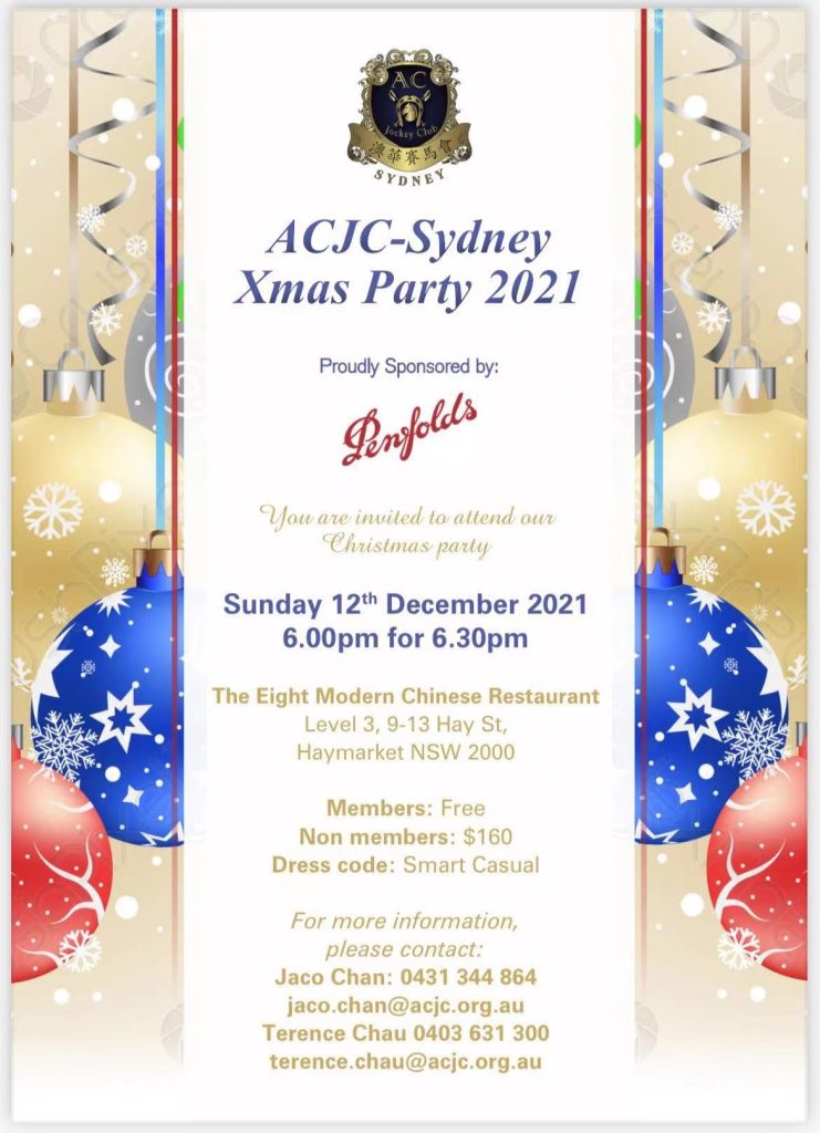ACJC Sydney 2021 Christmas party at The Eight Restaurant on Sunday. Thanks for the support of Penfolds wine, Lee Kum Kee. Hengfai trading, 古月龍山, 天鵝酒庄. Our members & friends can catch up after the long lockdown. Nice food & wine, good company -a very successful & happy Christmas party😀😀😀