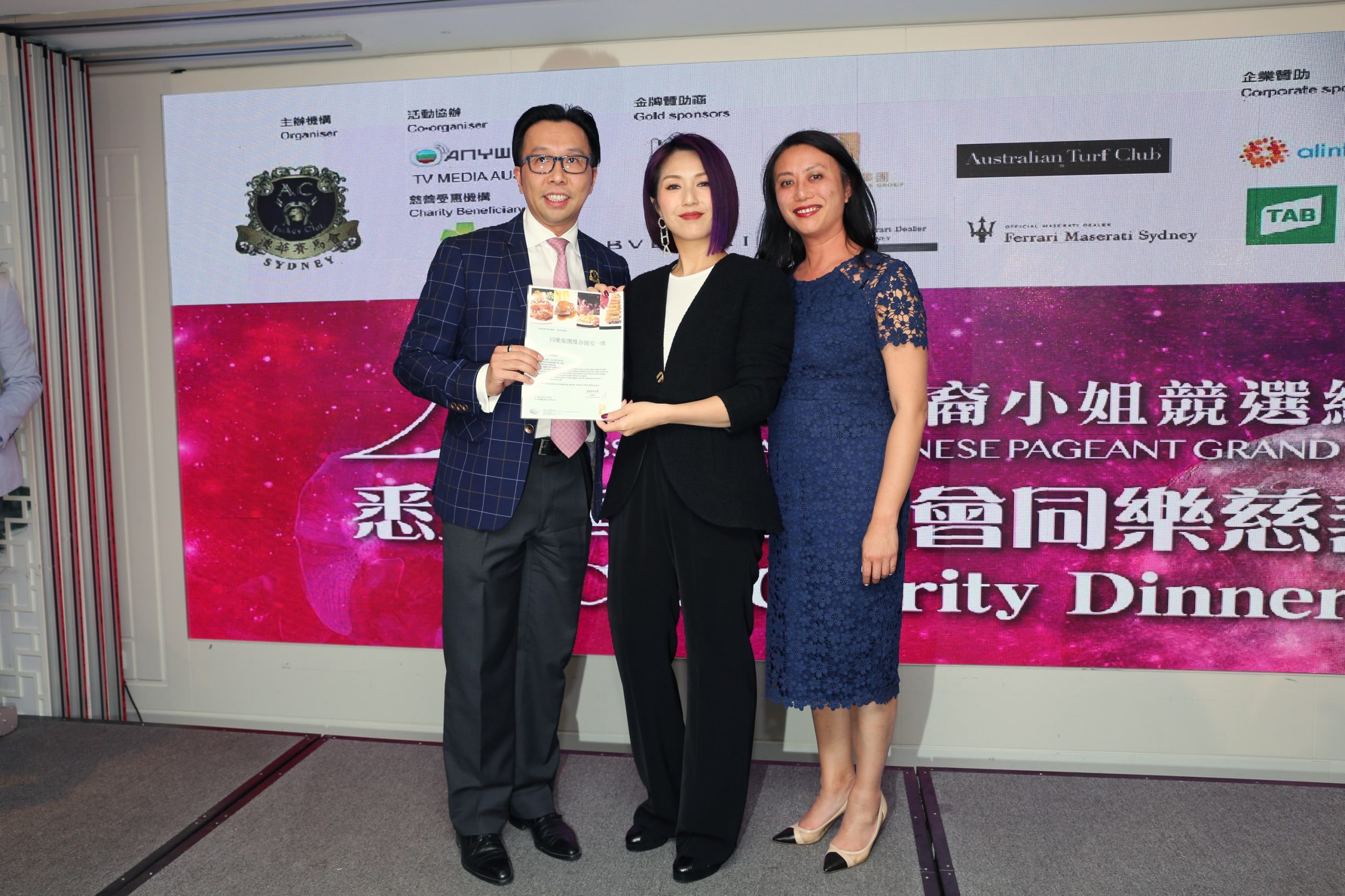 The Australian Chinese Jockey Club Sydney Charity Dinner last night, raising funds for the Chris O’Brien Lifehouse. Thank you to TVB for co-hosting and for bringing the 12 finalists for the Australian Chinese Beauty Pageant. Thanks also to renowned Hong Kong artist Miriam Yeung 楊千嬅 attending, & the support from all sponsors, friends, and fellow ACJC members. A very successful event & a lot of fun. 澳洲悉尼華人賽馬會慈善晚宴,為慈善機構Chris O’Brien Lifehouse 筹款.