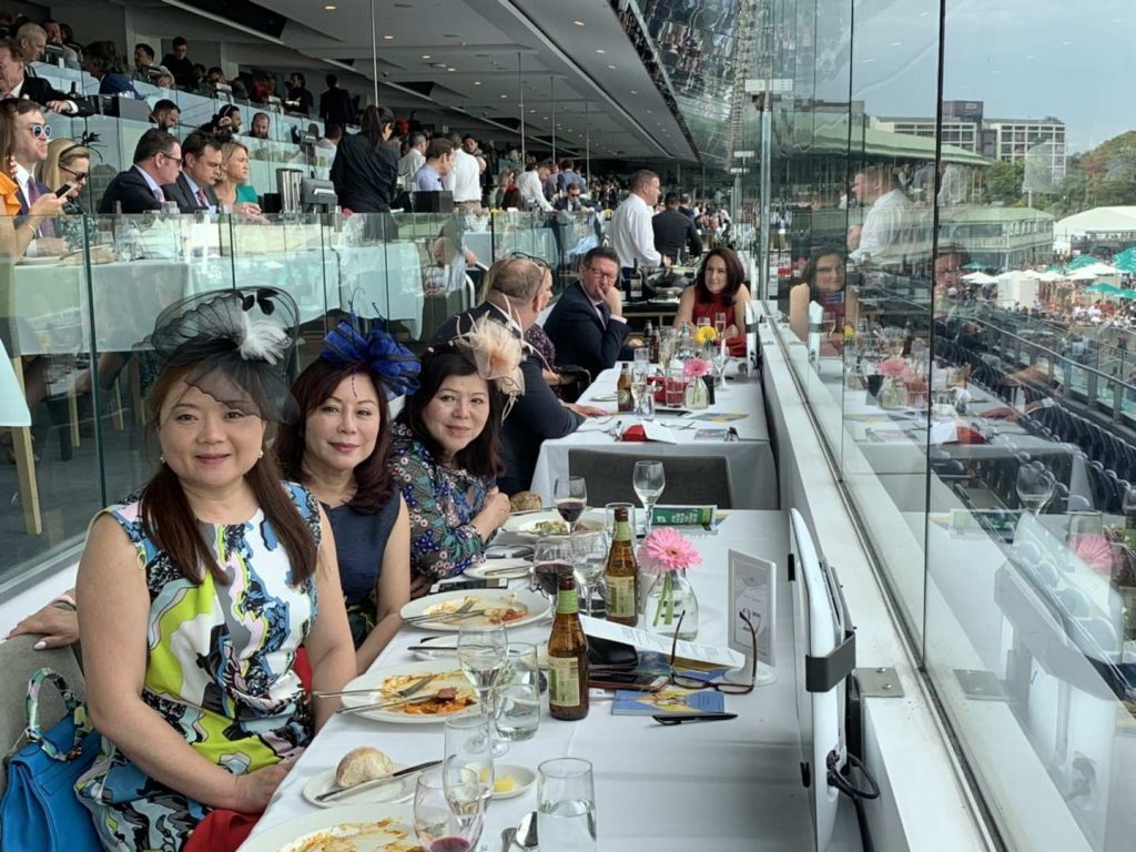 angela November 6, 2018 Recent Events Melbourne cup day lunch Melbourne cup day lunch at Royal Randwick racecourse . We got two horses to run in Flemington. A happy day even no winning yet. 墨尔本杯午宴. 支持我们的两只在墨尔本出赛的馬。